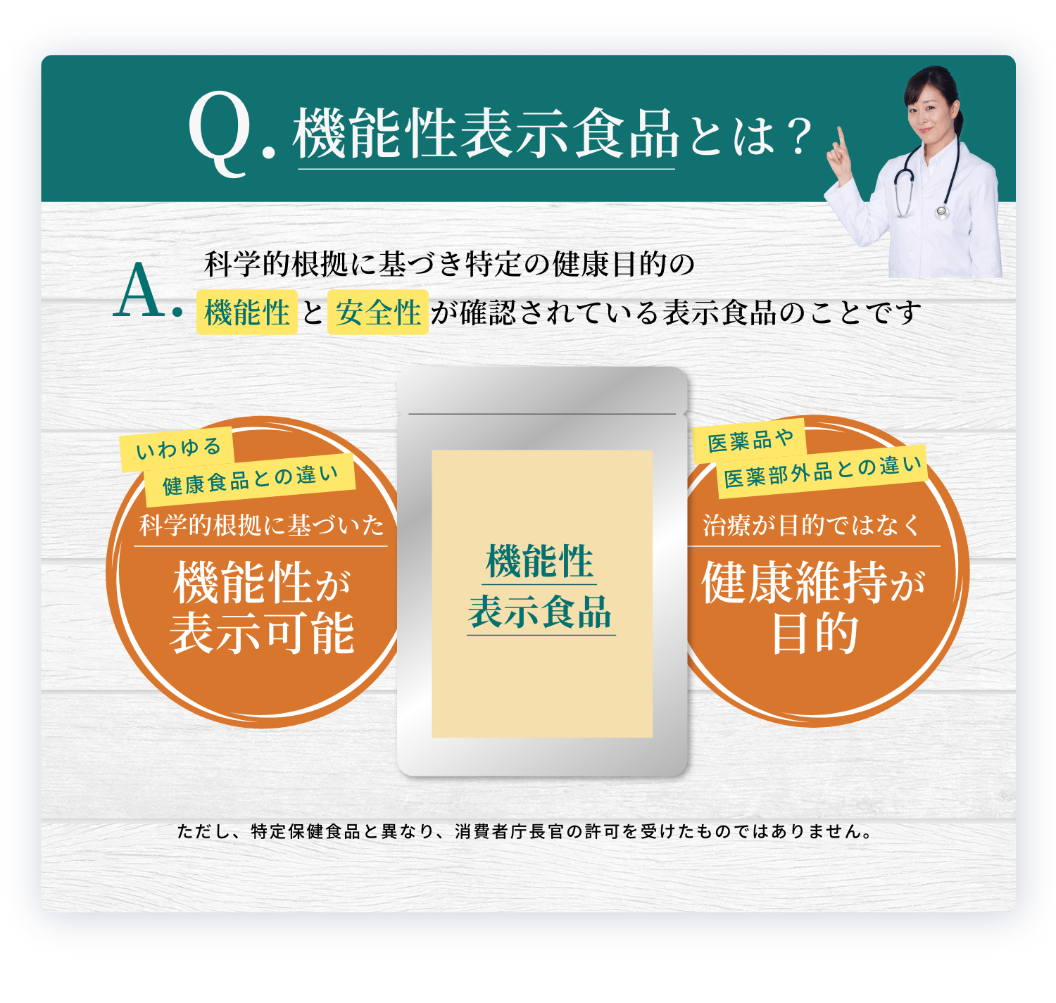 - ※特定保健食品と異なり、消費者庁長官の個別の許可を受けたものではありません。