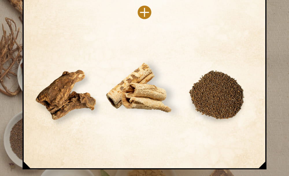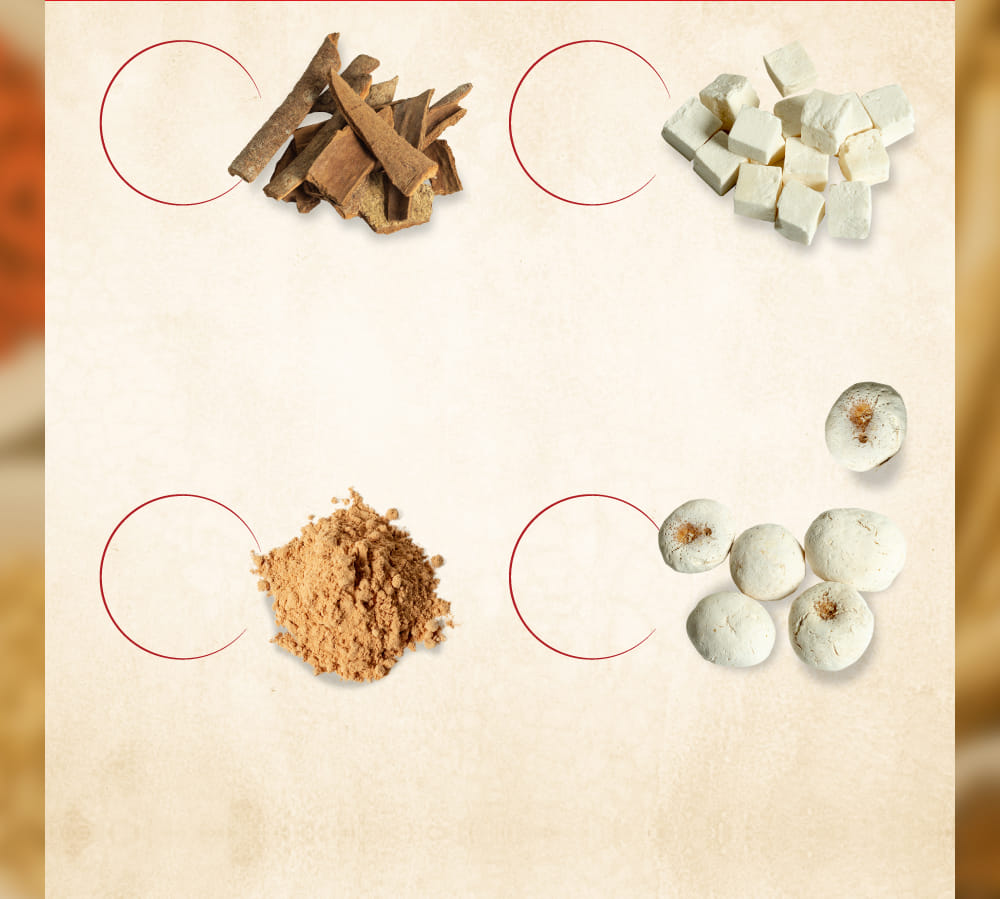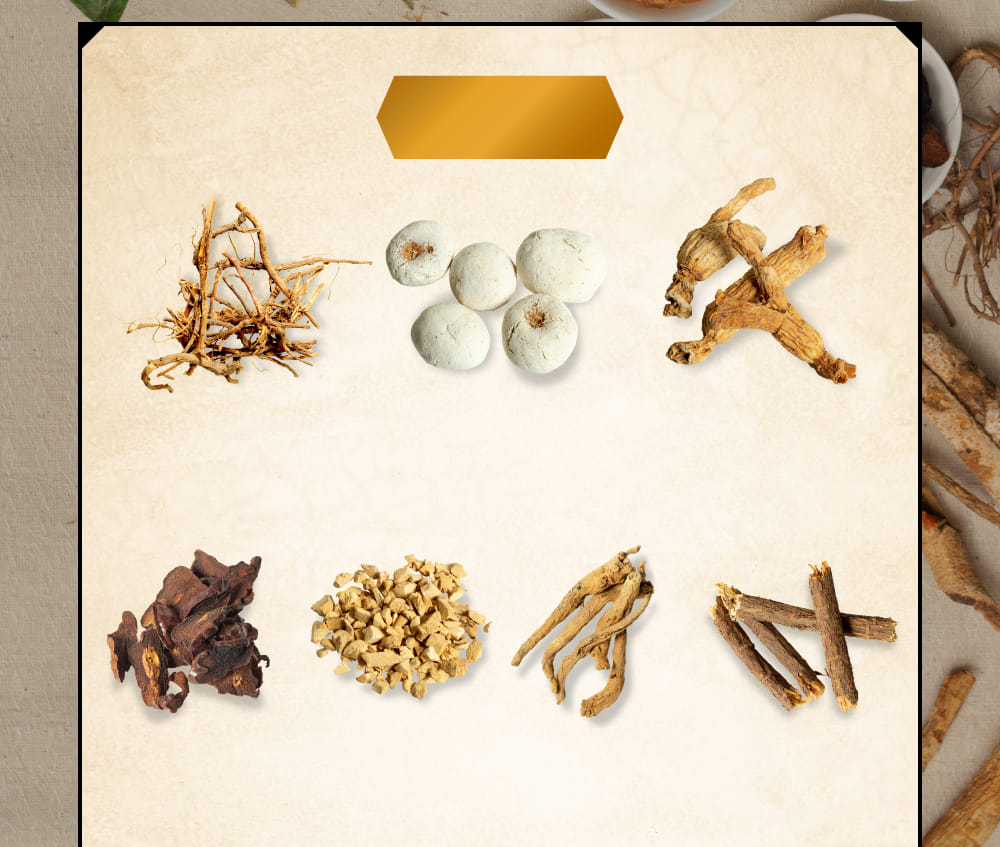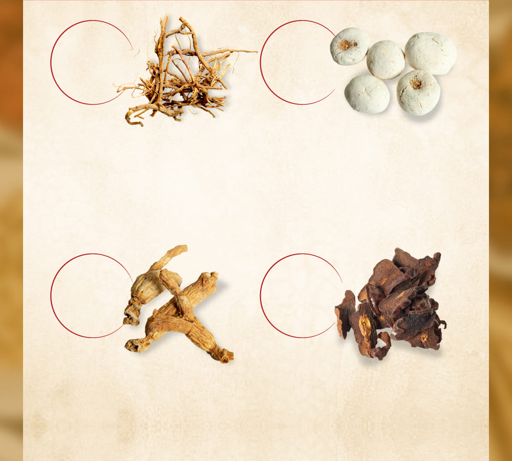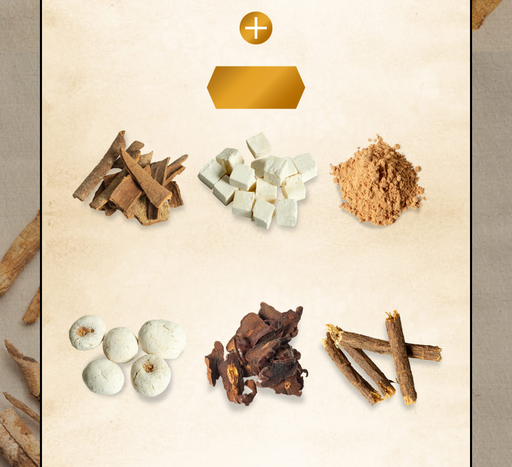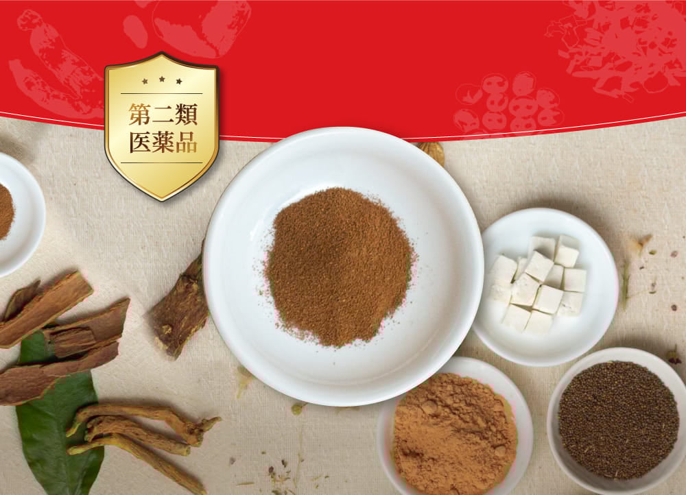 - ケイヒ末/0.81g 、タイソウ末/0.24g、モッコウ末/0.24g、カンゾウ末/0.24g、リョウキョウ末/0.24g、ニンジン末/0.81g、ブクリョウ末/0.24g、 ショウキョウ末/0.81g、ソウハクヒ末/0.24g、サイコ末/0.81g、オウゴン末/0.24g、シソシ末/0.24g、ハンゲ末/0.81g 添加物は含有していません。