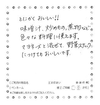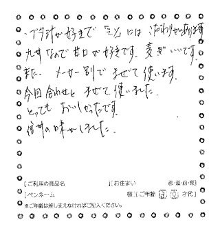 (個人情報保護のため、お名前は別名に変えていますが、いただいたお声の原紙は当社にて大切に保管しております。)