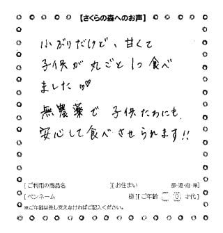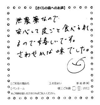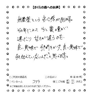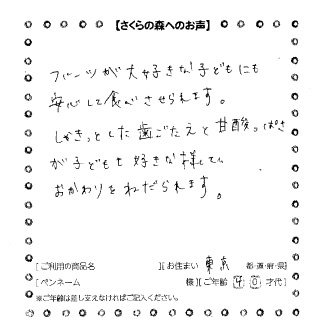 (個人情報保護のため、お名前は別名に変えていますが、いただいたお声の原紙は当社にて大切に保管しております。)