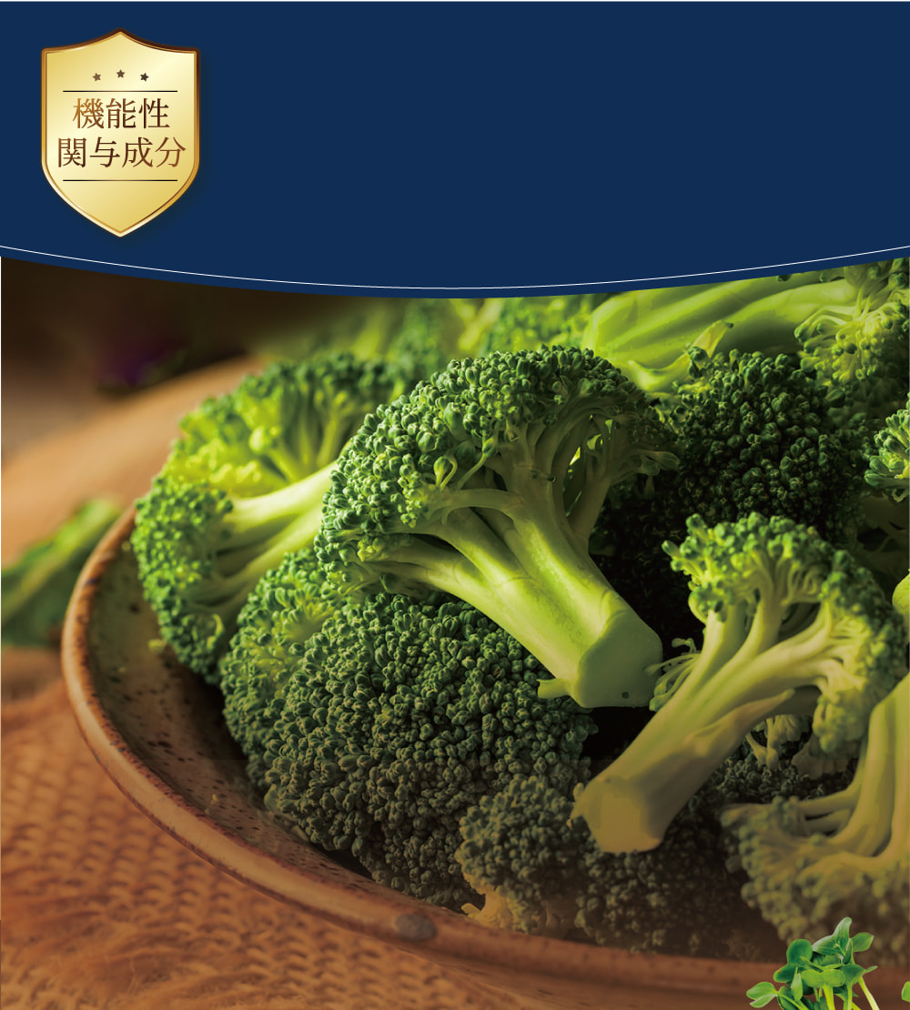 ブロッコリーやケールなどアブラナ科の野菜に多く含まれ、ピリッとした辛みを持ち、解毒力や抗酸化力を高める作用により、健康な中高齢者の健常域でやや高めの血中ALT値を下げる機能があることが報告されています。植物の中では「スルフォラファングルコシノレート」として存在し、分解されると「スルフォラファン」に変換されます。